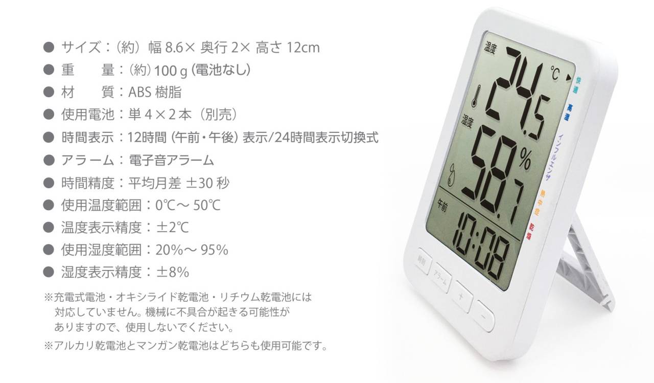 温湿度計付きデジタル置き時計/DZ4